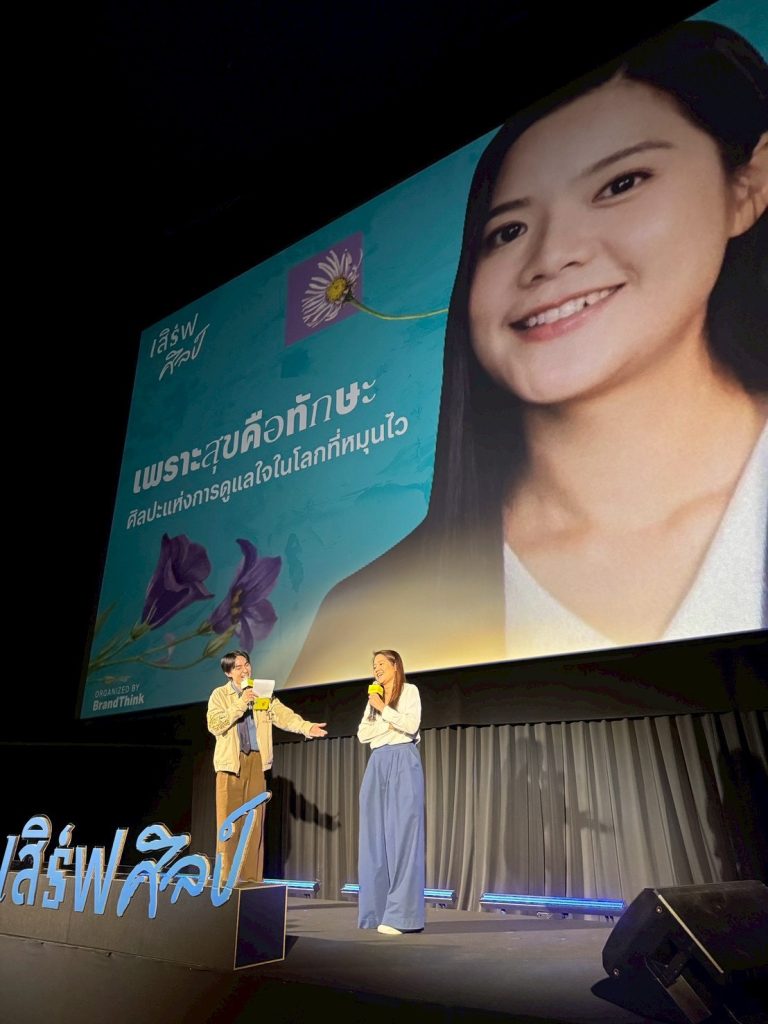 งานเสิร์ฟศิลป์ที่บริษัท ปตท. จำกัด (มหาชน) จัดร่วมกับ BrandThink คือช่วงเวลาที่เราจะได้รับกลับมาดูแลใจตัวเองกันอีกครั้งท่ามกลางความโกลาหลของโลกใบนี้ และพายุอันวุ่นวายที่รบกวนจิตใจ กับ ‘หมอเอิ้น-พิยะดา หาชัยภูมิ’ จิตแพทย์และ Happiness Consultant ผู้เชี่ยวชาญด้านสุขภาพใจและความสมดุลในชีวิต